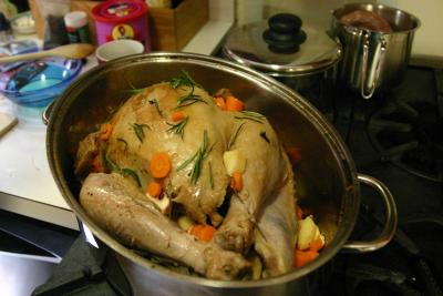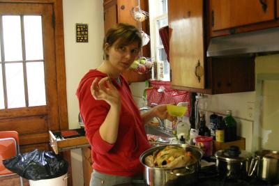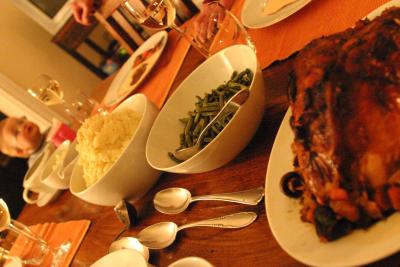 Nach einer kurzen Pause, die die Damen den lieben Kleinen widmeten, gaben sie dem Truthahn noch ein mal so richtig Zunder und schon ward es getan. Die Zutaten waren bereit, der Tisch gedeckt und geschmueckt