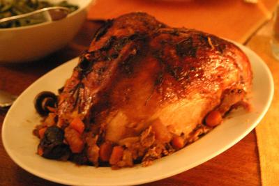 Nach einer kurzen Pause, die die Damen den lieben Kleinen widmeten, gaben sie dem Truthahn noch ein mal so richtig Zunder und schon ward es getan. Die Zutaten waren bereit, der Tisch gedeckt und geschmueckt